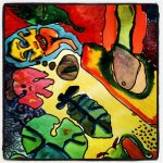 The third aspect from Paul Klee’s work is his constant playfulness. Wandering play, cheeky play, serious play, anti-boredom play, funny and dark play, structured, critical, comic, illuminating play. He enjoyed his funny experiments with “transferring” images, the comic canvas, the almost childish sometimes uncanny drawings, the archaic fish and other marine creatures, the three eyes of an startled child… Years ago while sharing a flat with my ethnobotanic friends (Nelson Pinilla y Tamar Prado), we created a game based on the surreal “exquisite corpse”, each of us started a drawing/painting and work on it for the duration of a song or a melody. When the melody finished we have to change. Pepo, our landlord and sophisticated DJ would be the musical priest of the long evenings of play! they varied from 1 minute of windy whispers toward 17 minutes of In a Gadda da Vida (Iron Butterfly)! We got bananas with Nico and the Velvet Underground, got spooked by the ritual sounds of Jorge Reyes, cheered up with the Violent Femmes, felt comfortably numb with Pink Floyd and lighted up with the Legendary Pink Dots! And the creations where amazing! For many months we only did this, we did not need TV, we had the music, colours and we fed each other imaginations! It was the freedom and the playfulness of it all, the absolutely no limits of the exercise, the liberty of creating our no-rules! Although I do not keep the works of that time, here there are three “exquisite corpses” following that recipe, created with my compadres Cecilia Loureiro and Jose Rodrigo Cordoba: