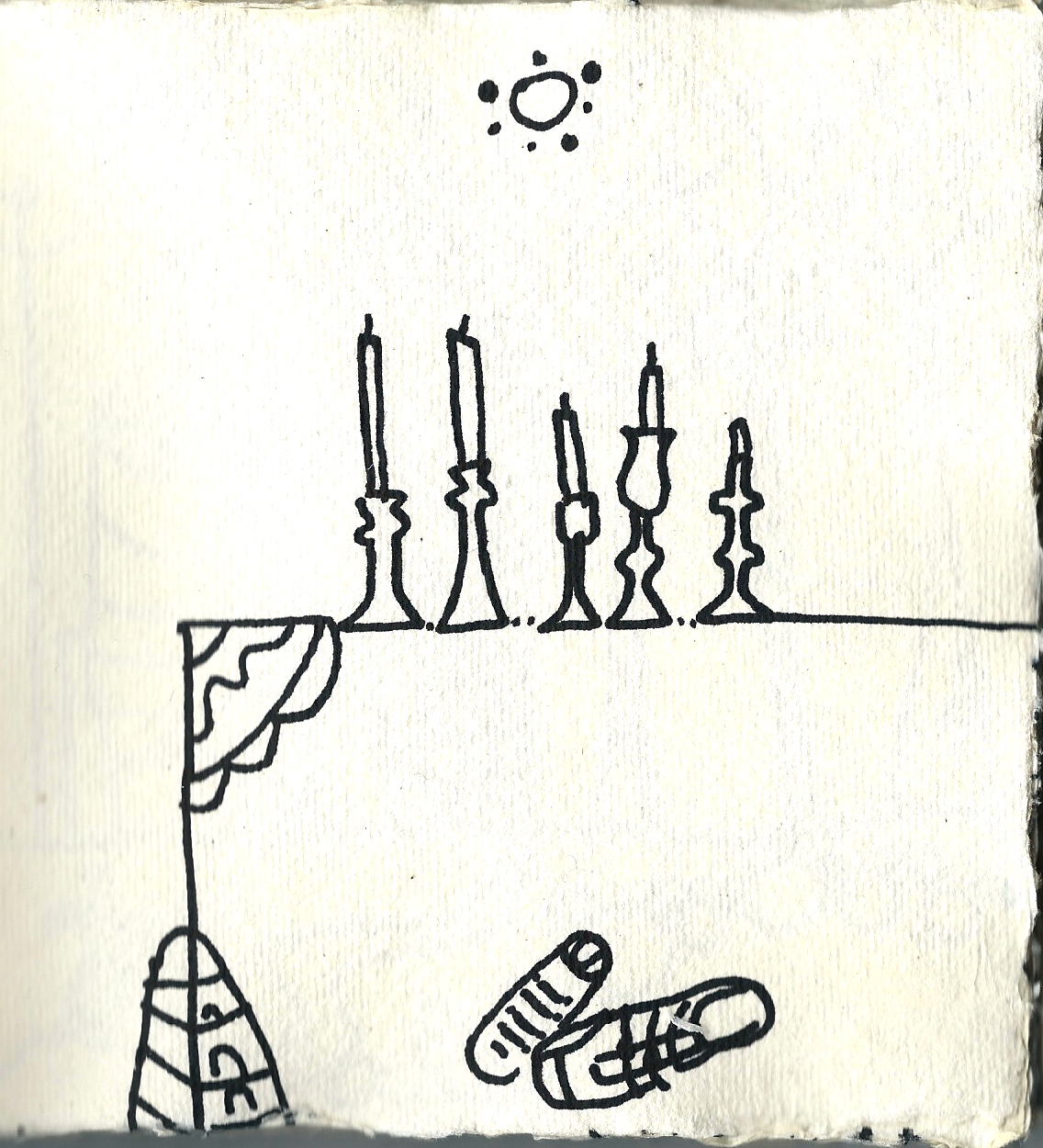 Alison’s shoes under the candles (Ink on hand made paper BAcevedo)