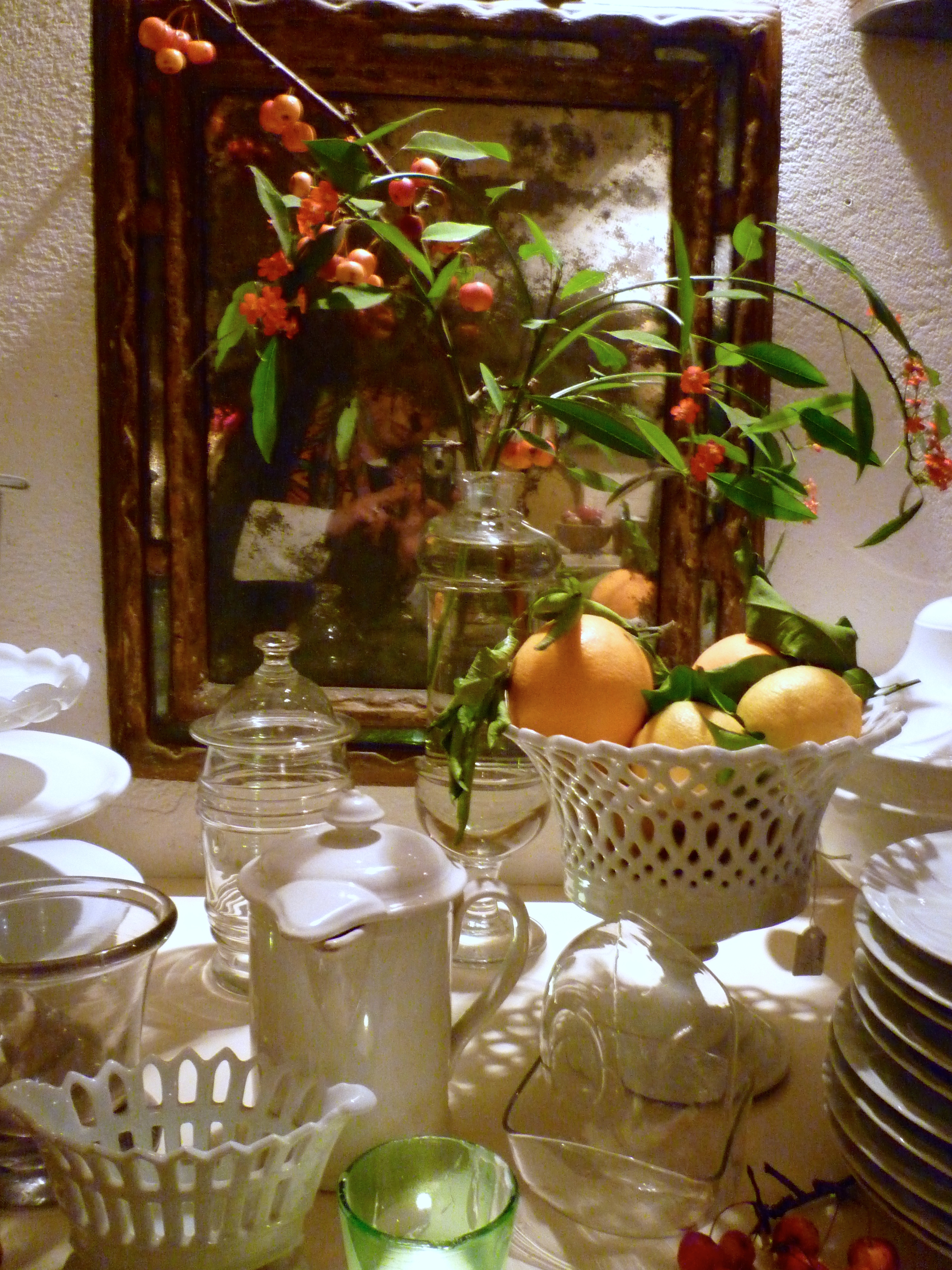 As a beautiful and coquettish city, Amsterdam welcome us in her beautiful winter colors. A soft breeze in the sunday afternoon and a stroll toward Johann’s place (www.antiek58.nl) just in front of the canal in the bohemian neighborhood of Jordan. His house, recently renovated, is a listed building reflecting the architecture of this iconic city. Its interior design reflects the sophisticated style of his owner: a mixture of shabby chic (the proper and original style, of used walls, grey / blueish interiors of french decandence), industrial look and a baroque decoration of transparent glass, silver and beautiful flower arrangements. It was a “open house day” for customers and friends to peruse around the beautiful objects, carefully selected in small markets in the South of France.