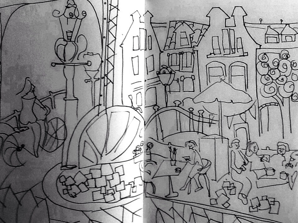 I really like to come to the NL. I used to live here from 2000-2002 and I feel so comfortable walking around. Indeed I have dear friends who welcome me with open arms and make me feel returning home. And it is also so nice to be stimulated by the colours and visions of the cities here. Amsterdam for example never ceases to surprise me, the city is so beautiful, with the sun is even better and one can just sit in any corner to draw and draw and see the world goes by.