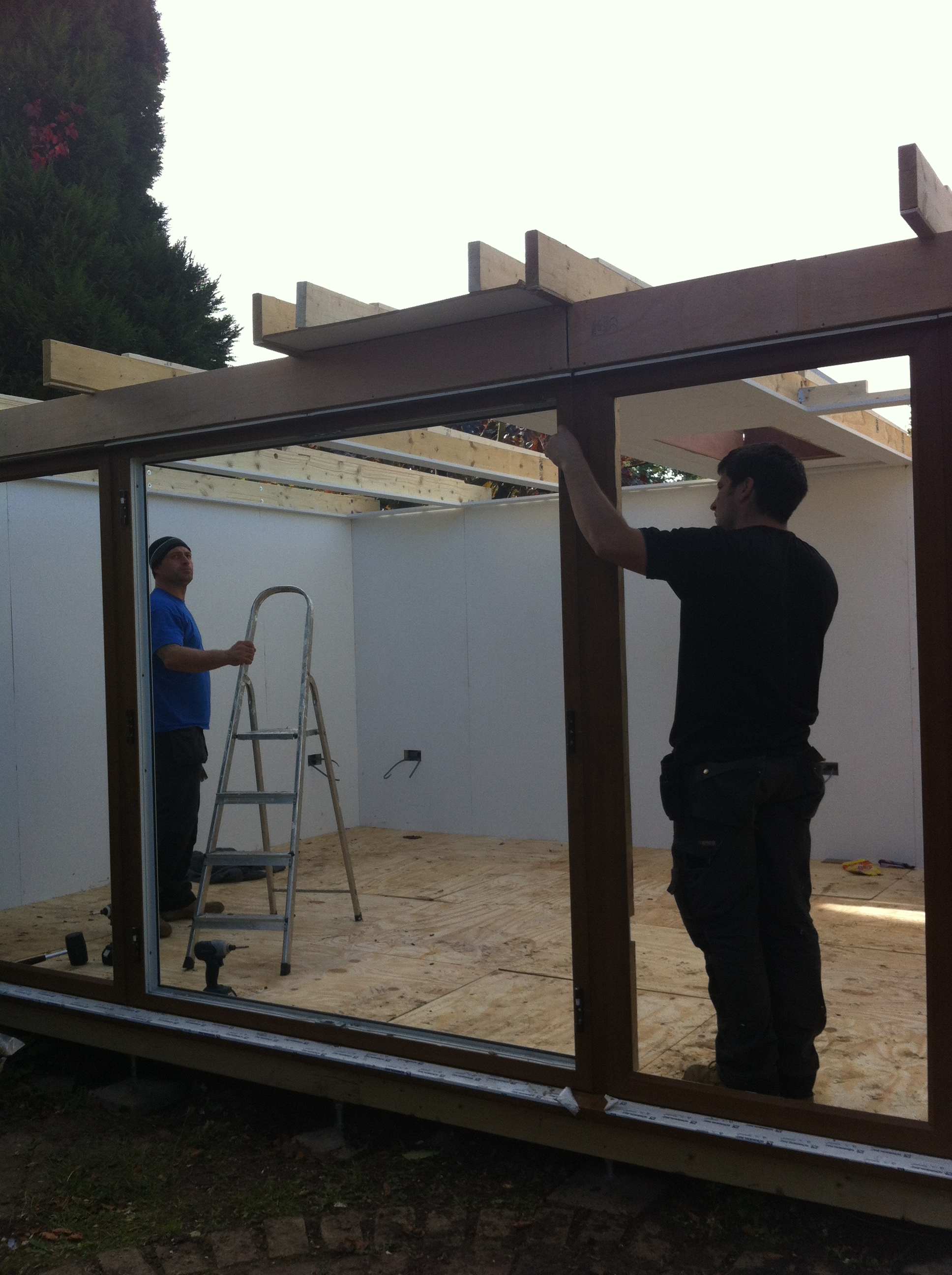 And there it came the day when the studio was going to be installed… in less than three days, the dynamic team of Booth Garden Studios, built the studio, using per-fabricated materials, almost like lego. Here there are the pictures: