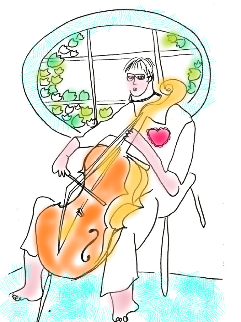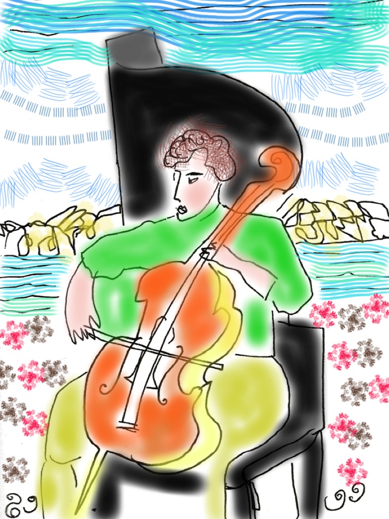 I drew the talented barefoot cello player James Barralet here.