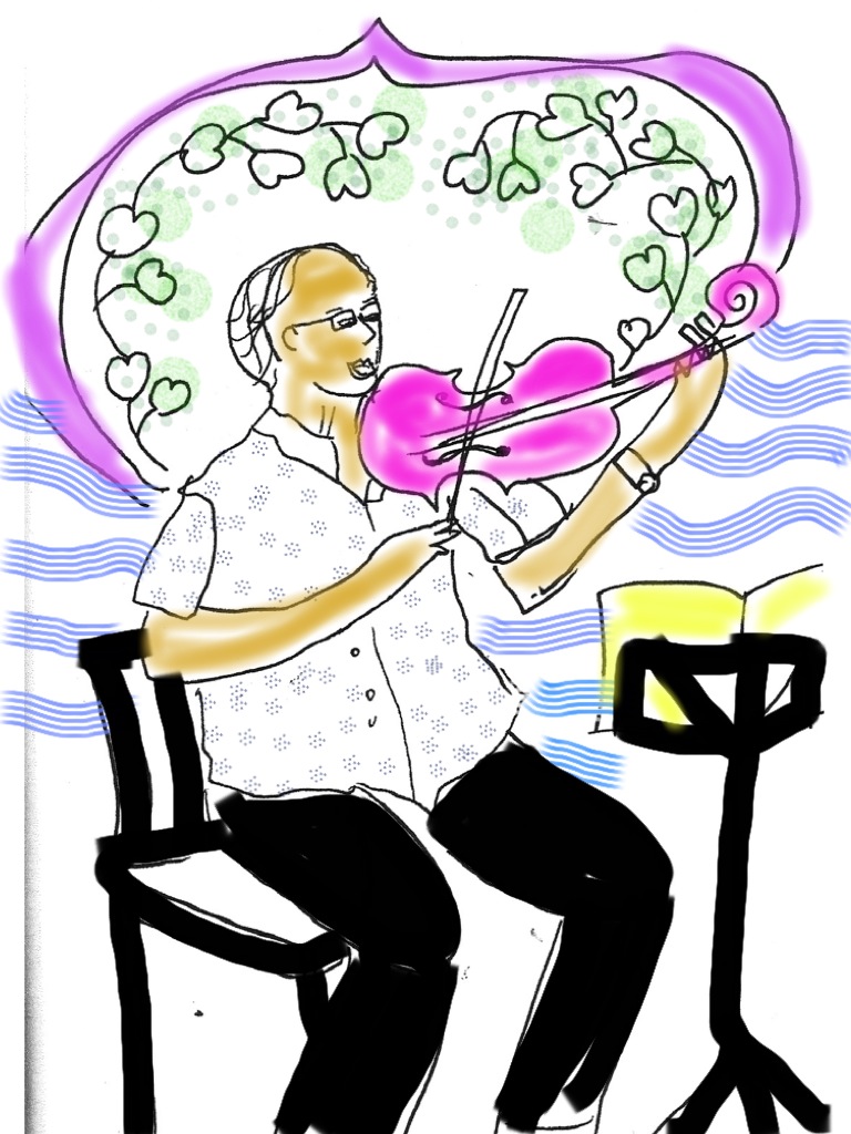 After a while I moved upstairs to hear the Faure Piano Quintet in D minor Op.89 – Ida Levin, Savitri Grier, Lila Brown, Julian Arp, Susan Tomes. I decided to do some zentangles and to draw the musicians, so to weave my lines with the melodies… once again, words and feelings suddenly came out…