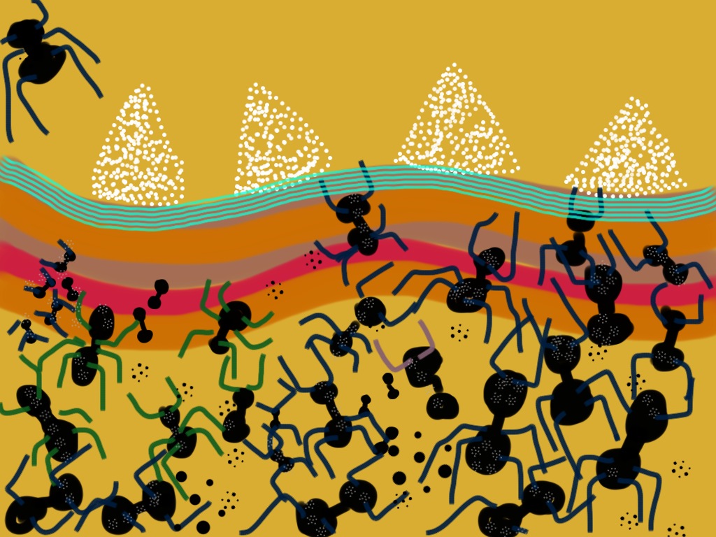 I was very pleased to see that Colombia was nicely represented by the work of several contemporary artists. Indeed, the poster of the exhibition is the work of Rafael Gomez-Barros: La Casa Tomada, a large scale installation of gigantic ants crawling through the gallery rooms! Each of the, probably hundreds, ants is made of fiberglass, rope and wood, and coloured with coal from El Cerrejon, one of the largest coal mines of the world, located in the north of Colombia.
