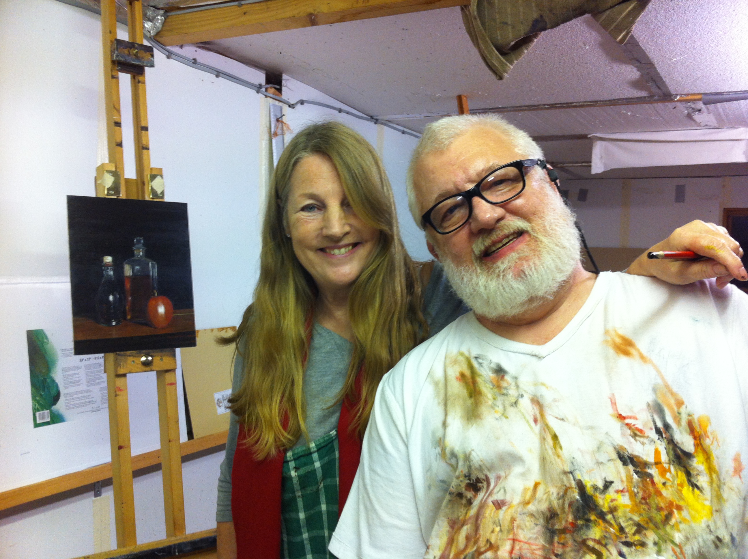 So what’s the story of this post? Last weekend I went to visit my dear friend Lesley Longworth, who moved from around my corner to almost 170 miles away in the wilderness of Wiltshire. A difficult decision, the move has been successful and she is nicely settled in her new home…moreover, it has opened her the possibility of painting full time and empowering her to live the life she wants. We went to a “still life” oil painting retreat in the Cotswolds with Mike Skidmore, a great artist, who found his call after years of working as a graphic designer. He is a successful -selling artist- whose portraits and still-life command good prices by collectors. In his studio in the middle of Cotswolds we had the opportunity to dedicate time to the genre of “still life“.
