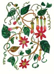 I particularly find this a very sexy flower, the long phallus crowned by the flower, the playful and open pistils, are seductive. Humming birds particularly love these flowers as they seduce all sort of winged beings to share their nectar and pollen. Passion flora are mostly climbers, with curly arms twisting around any support. I think that love sometimes is like that, and how we like to put our arms around the loved one… and cuddle…