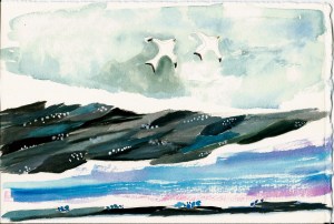 Walking by the beach – Watercolours by BAcevedo copyright