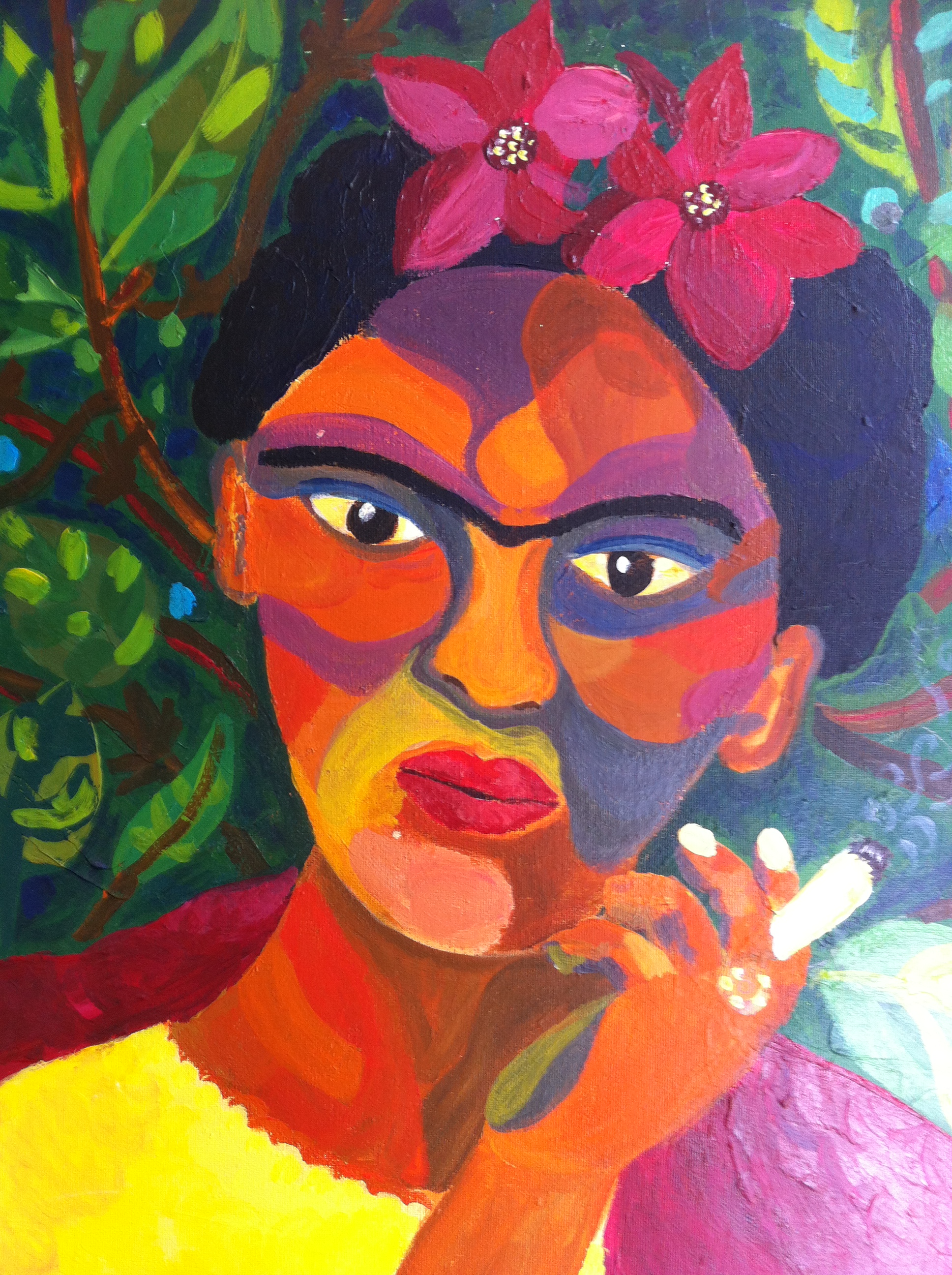 Fridas Pop. Frida Smoking (2009), Frida in Blue with Parrots (2013)