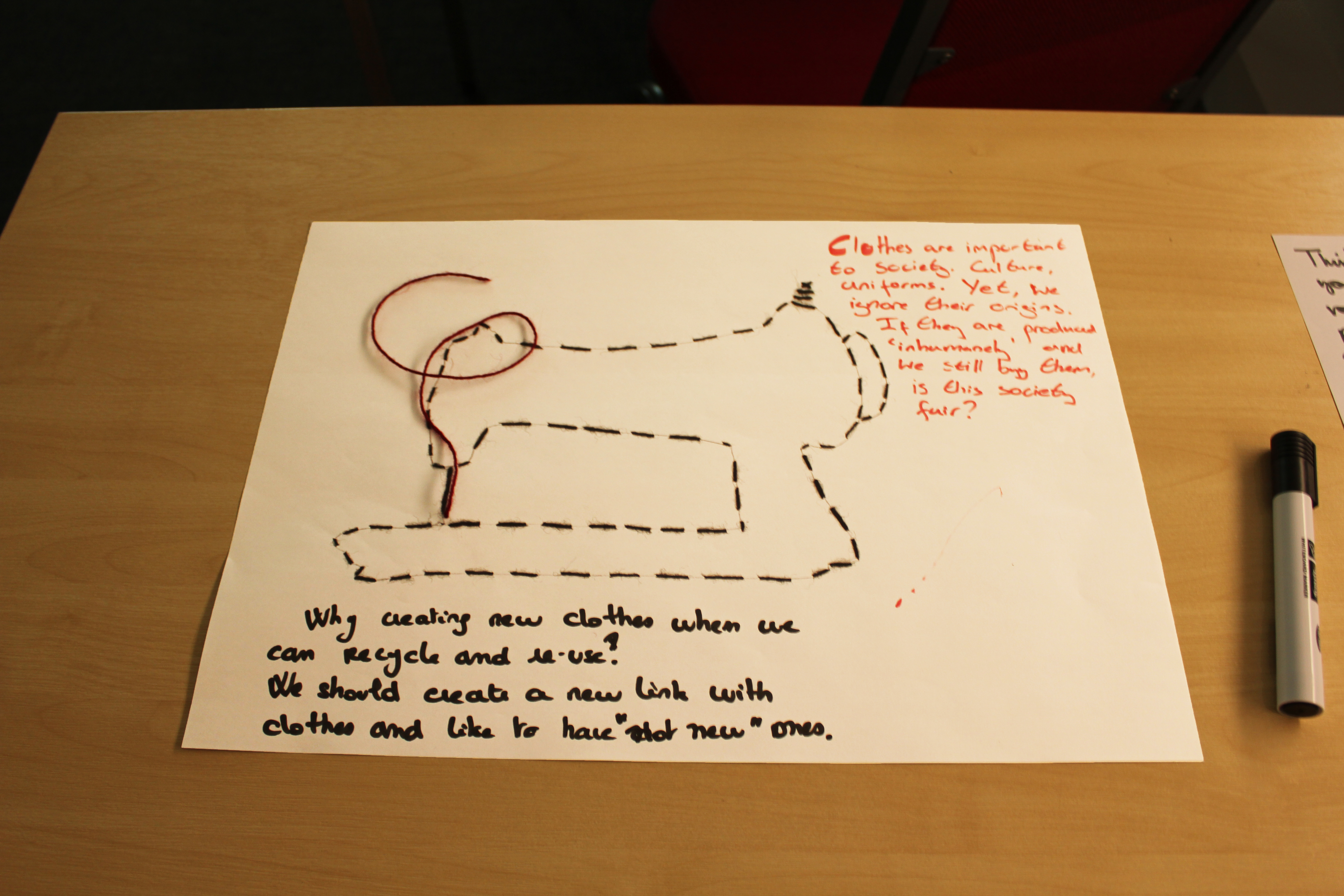 The presentation of RawTag -work in progress- at the RAW CATALYST exhibition, involved a multi-media installation inviting the audiences to question and play with one of our most favorite items: our clothes! Responding to the invitation of the Cambridge Sustainability Residency to reflect about the notion of RAW, RawTag aims at linking the “raw materials” and “raw emotions” woven into our favorite garments. It starts by evoking memories and emotions linked to a particular garment and to question about where that garment comes from. The reactions can be diverse: guilt, shock, surprise, anger, wonder, outrage or empowerment, but never neutral! And that’s what we got in this exhibition!