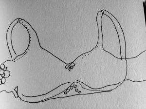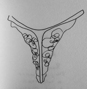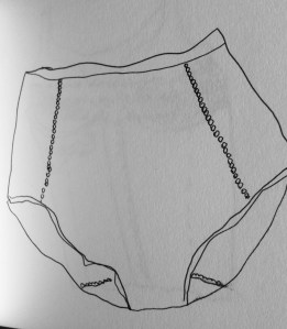 Although big breasts are celebrated in the media as sexy and desirable, the truth is that they can be troublesome and not entirely glamorous. On the other hand, the humble underwear can become a journey of reconnaissance and identity. In reaction to the prohibition of drawingin the V&A exhibition “Undressed” , I decided to transform my anger into something creative and thus I want to investigate my own relationship with underwear. I started by taking all my undergarments of my chest of drawers (pun unintended) and spread it around, so I could examine how I feel with each of those humble yet key garments in my life. I realised that my worst nightmare would be to leave the house without my underwear… it don’t care about clothes but underwear… that’s my thing.