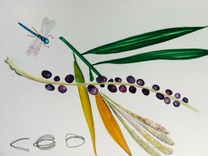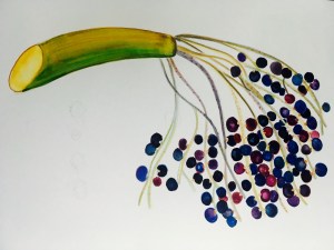 In the Open Studio of this year I will be presenting some of my work in progress (wip), series of work that I have started but it is still in development. One of the big projects for the future is my series of People and Palms: it is a series of paintings and watercolour illustrations in homage of this wonderful and symbolic plant. It is a collaborative work with my friend Lucia Prado, anthropologist and ethno-botanist, who have worked for almost 25 years with indigenous communities in Colombia. She wrote her master research about how indigenous communities in the Amazon (the Tikunas) are related with different varieties of palms. For the Tikunas, palms are not only nutritious food (fruits and seeds), but also, a source of materials and a symbolic being in their cosmogony, legends and rituals.