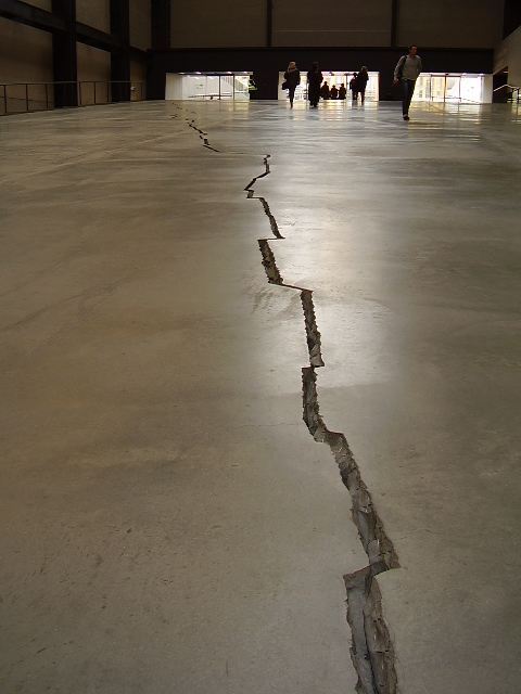 During the last seven years the Unilever Series at the Tate Modern has invited different artists to use the Turbine Hall as the setting for their works. The results have been memorable: the steel towers by Louise Bourgeois (2000), the memorable “Weather Project” (2003-2004) by Olafur Eliasson, and the sound sculpture of Bruce Nauman’s “Raw Material” (2004-2005), among others. In October 2007, the doors of the Turbine Hall opened to welcome the work of Doris Salcedo, the first Latin American artist to be commissioned to exhibit in this massive space. When entering the Tate Modern gallery, visitors received a leaflet advising caution when moving through the Turbine Hall. However, once you got inside, it was not very clear what the ‘art work’ exhibited was, or why caution was required. In fact, an initial look inside the Turbine Hall showed no perceptible change: just that massive room, empty… and a small, almost imperceptible crack on the ground, which grew and deepened throughout the Hall.
