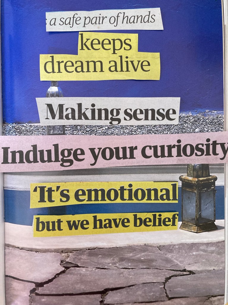 Then for the creatiBe oracle today i suggest to make a pairing of apparently odd things. The idea draws upon surrealism and the juxtaposition of different elements. We can find surprising combinations only if we dare to try! For instance; two diverse flavours in a meal; or two elements in a collage, even two different feelings in one sentence. How does that work? What emerges from those encounters?