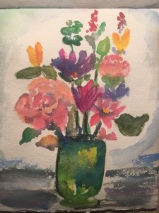 After what it seems to me ages of being ill I managed to recover a bit and somehow I felt a sudden urge to paint again. My studio has been taken by the preparation of my coming exhibition of “yonis” which have taken all my time and attention. However a yearn for painting seems to be my response to the (hopefully) beginning of my recovery and I created a temporary painting station in the house, near the fire! (Another reason to stay at home!)