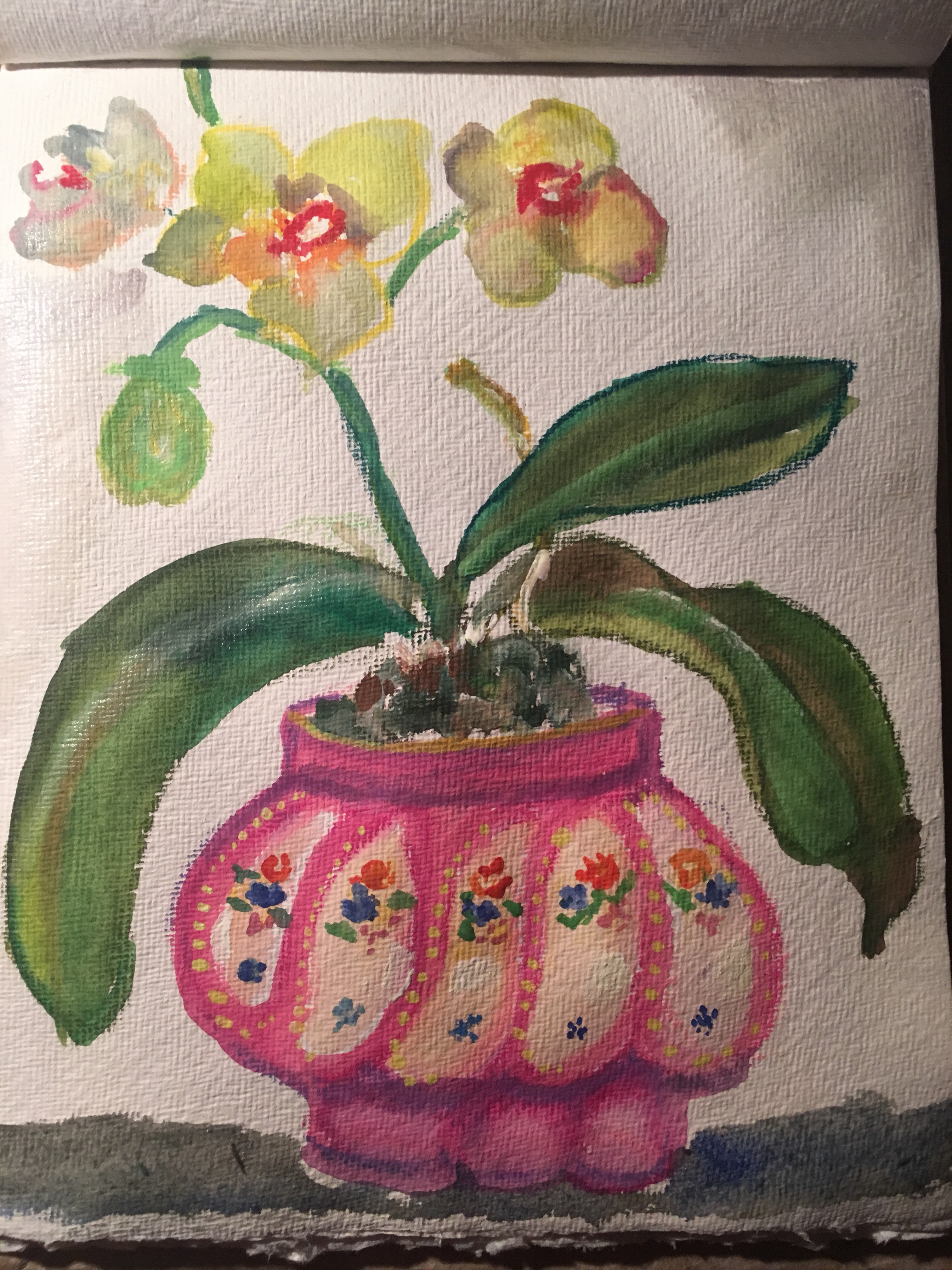 This is a gorgeous classic pot that belonged to lesley beloved granny, hence it’s value is increased! I use it for hosting flowering orchids, these exquisite beings of such sophistication and allure, just like lesley!