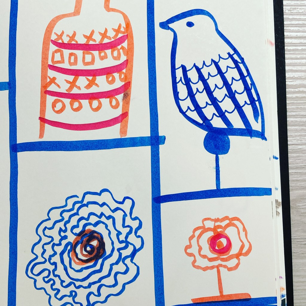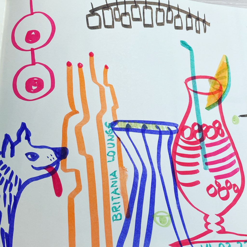 Art materials: as many as you need. I carry a bag with brushes, scissors, wasi tape and three types of watercolours. I carry at least one travel sketchbook, glue and I collect all sort of paper material for my collages. In this cruise I had the opportunity to attend watercolour lessons and they provided the materials, but is always to have your own.
