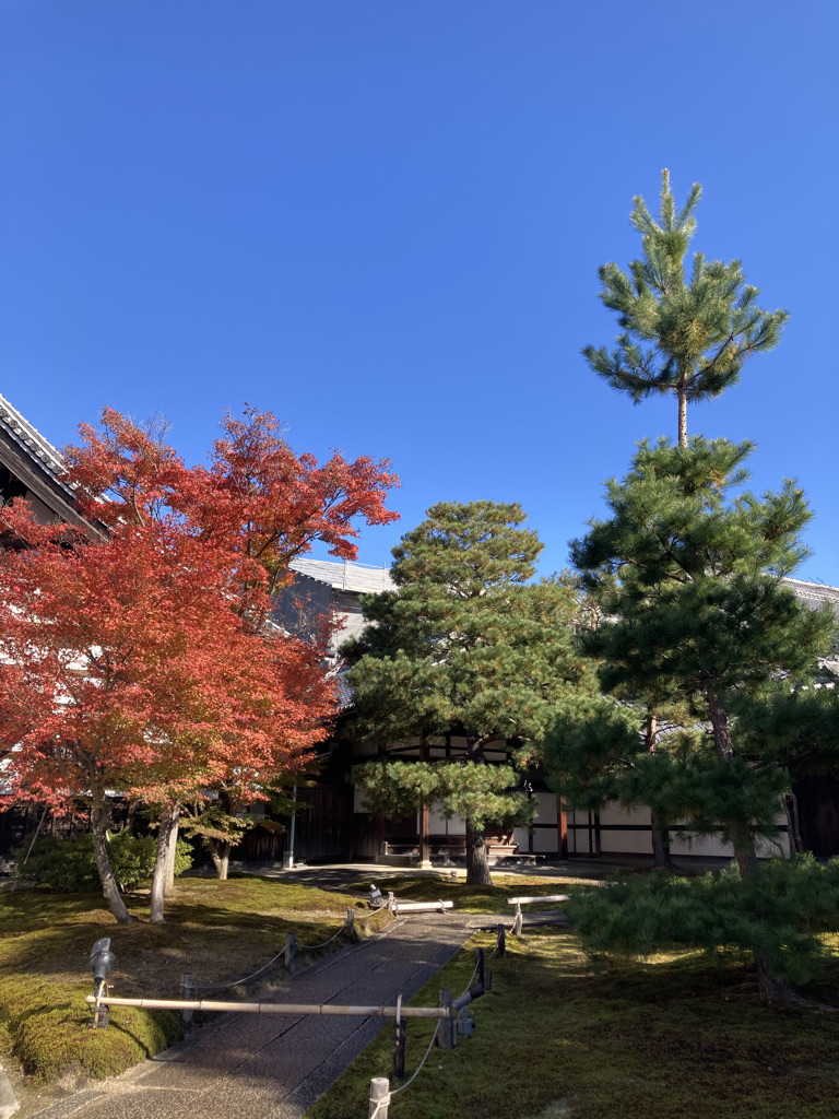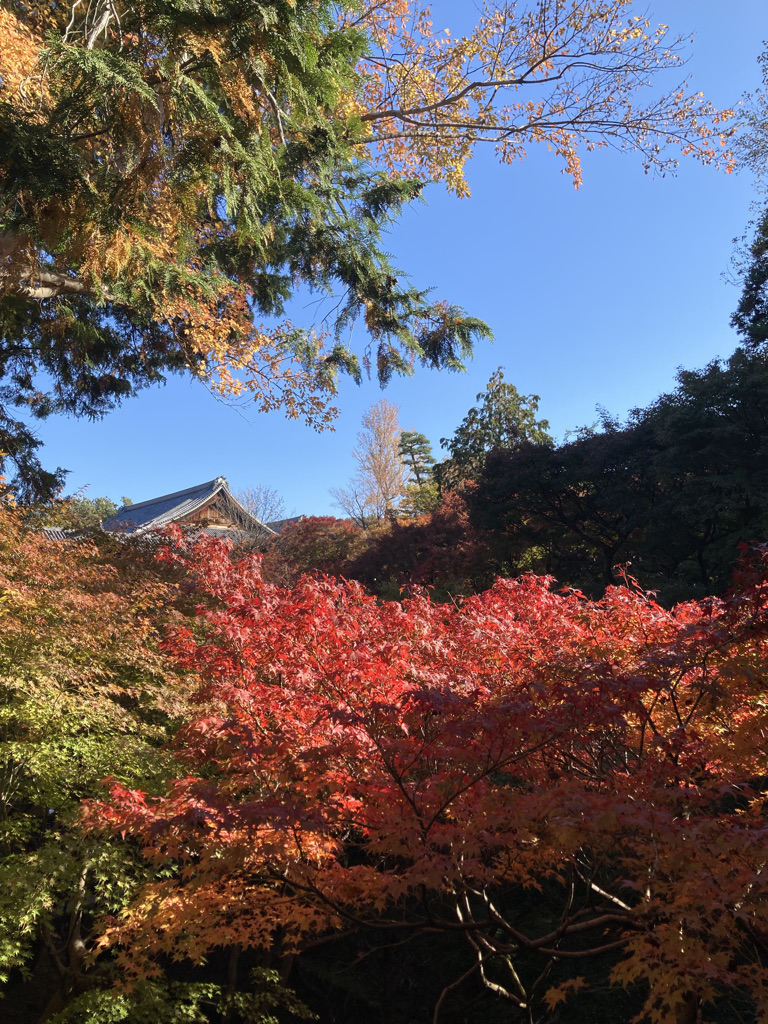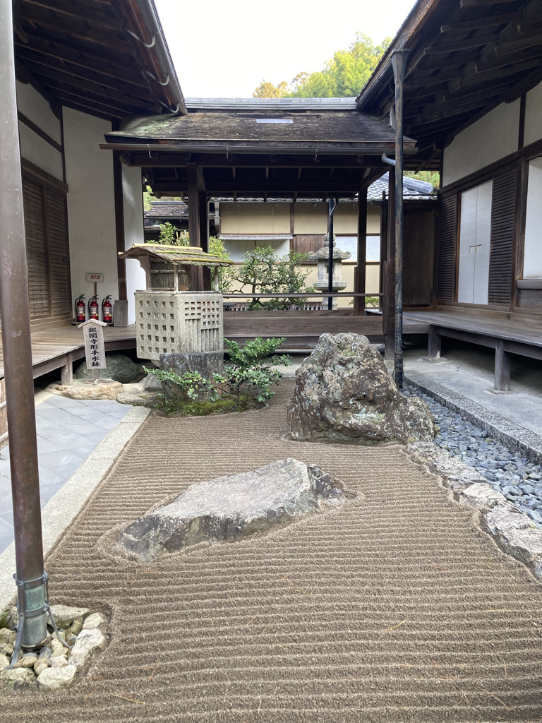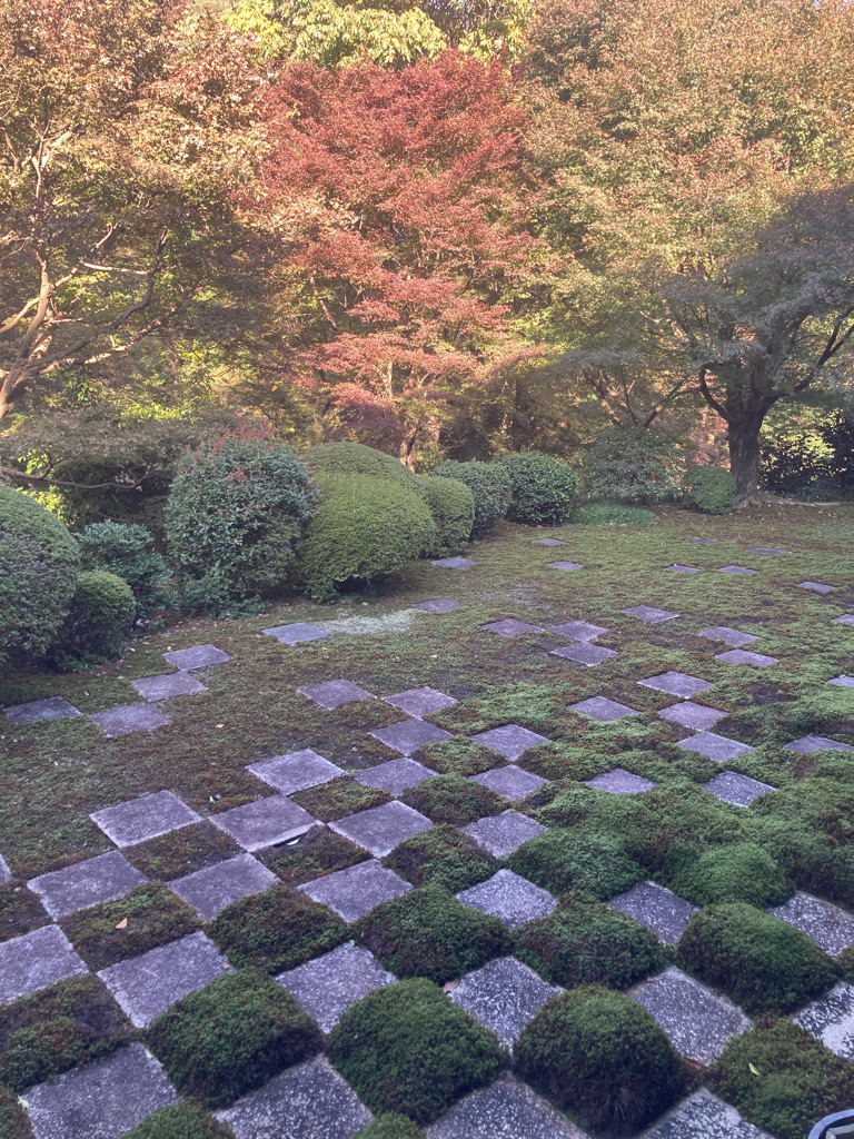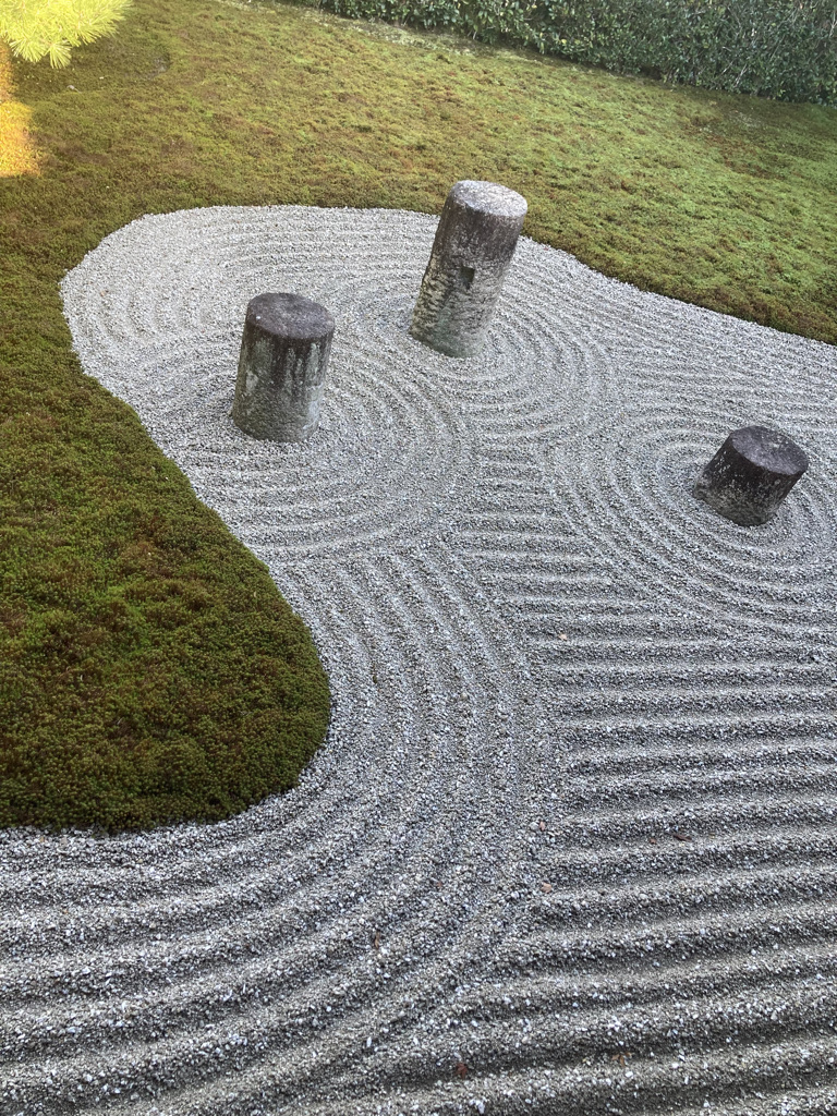 After negotiating with her, we arrived at the magnificent Tofuku temple, a jewel of architecture famous for its Zen gardens and the flotation of maple trees. There sitting down barefoot on the terrace of the temple our eyes wander through the raked gravel, stopping here and there on the symbolically placed stones, resting in a circular pattern or meandering through the straight raking of the almost luminous pebbles. It’s a very calming sensation, and a feeling of purity expands in our hearts.