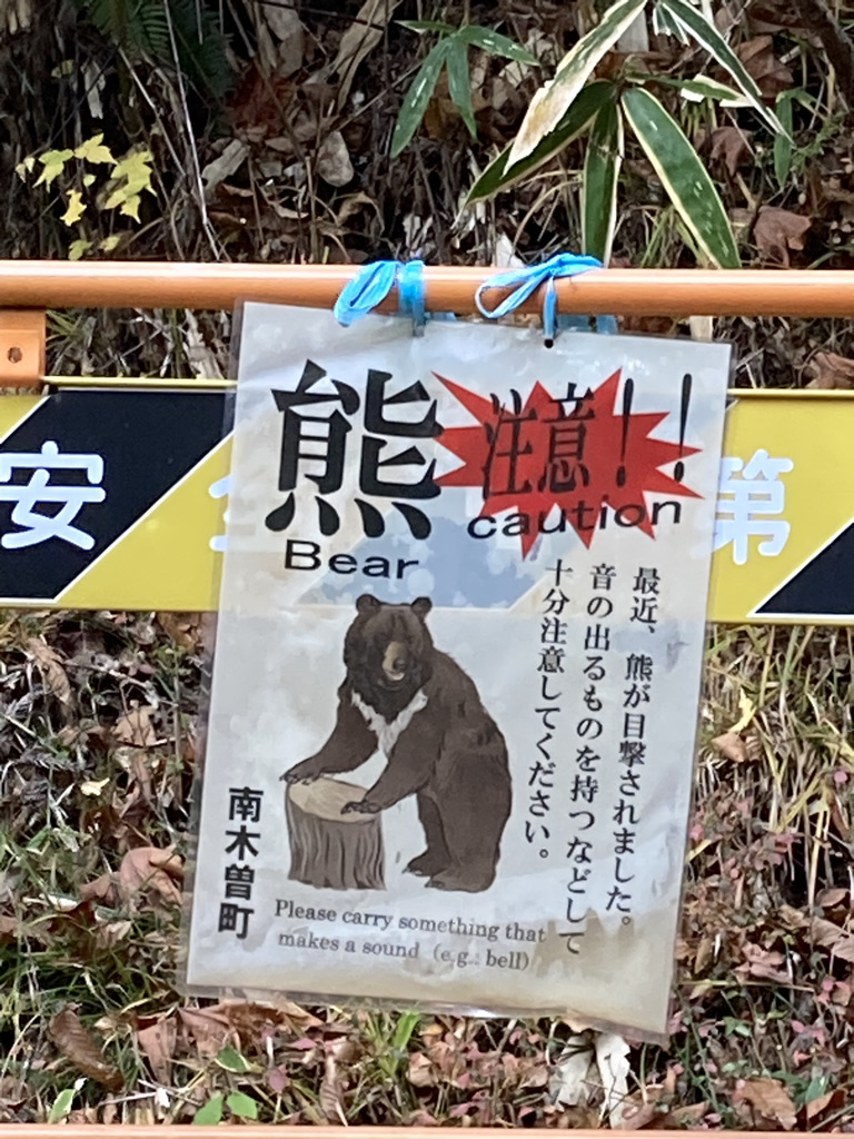 Don Quijote tells Sancho about a famous elixir, a recipe given to him by a magician that can cure all ailments in the world. When Don Quijote is wounded in one of his many scaramouches Sancho begs him to teach him how to prepare the elixir. Unfortunately the recipe goes wrong and both spend the night in the woods with a bad tummy. We went on climbing until a brief detour and now it’s a bit down the hill. The landscape of pines, cypresses, bamboo groves, mighty waterfalls, and meandering soothe my troubled mind. My husband -or Sancho carries my mochila and tríes to keep me out of danger. Almost midway we are welcome to a Japanese inn in the middle of nowhere. A sign offering free tea, restrooms, and water from the mountain springs. It’s time to rest and take stock. A couple of walkers join us. We are clearly the eldest couple in the trail so far. But at least we are seeing more humans than bears!