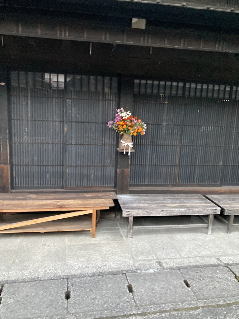 The innkeeper said the dinner would be at 18:00 upstairs. We are accommodated on the floor in chairs and short tables. The menu includes the usual staples, rice, miso soup, pickles, and local delicacies; rainbow trout and a pink-coloured meat that turns out to be horse meat. Sancho refused to eat it but I gave it a go. It is not really nice. We are also offered Some snacks of crickets that actually are very tasty! The other guests are two ladies from Singapore, an Australian woman traveling on her own, And a couple of film producers from Los Angeles, sitting next to us. This is their second time in Japan, they were part of the crew filming the Blue 101 documentary on Netflix, trying to find out the secret of longevity in certain parts of the world. Apart from a good diet the real factor is being part of a community and having a purpose: it is again this idea of ikigai, a reason to be and to belong.