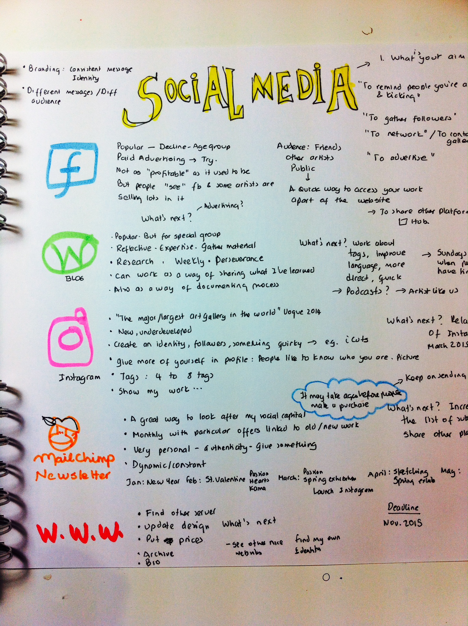What I want to do? Just before you start your artistic life, it is very important to “dream” about what you want to achieve. It starts with a mission or a vision, and it can be unfolded into more specific objectives throughout the year. This all sound a bit too structured, but that’s the point of it. This process transform your dreams into specific actions, therefore, into more doable activities and that level of control is really empowering. Be realistic, and try to be as precise as possible. This of course does not mean that you are not open to possibilities and opportunities, but somehow to know what you want to do makes life easier.